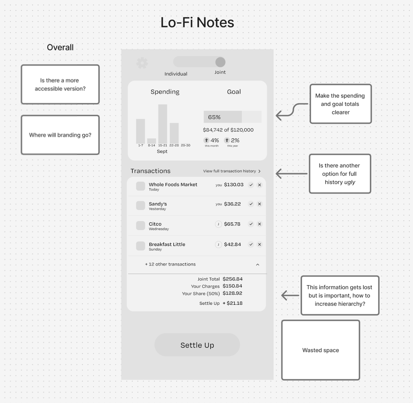 I then broke down some of the pitfalls of the lo-fi design to try and optimize before jumping into the high fidelity versions.